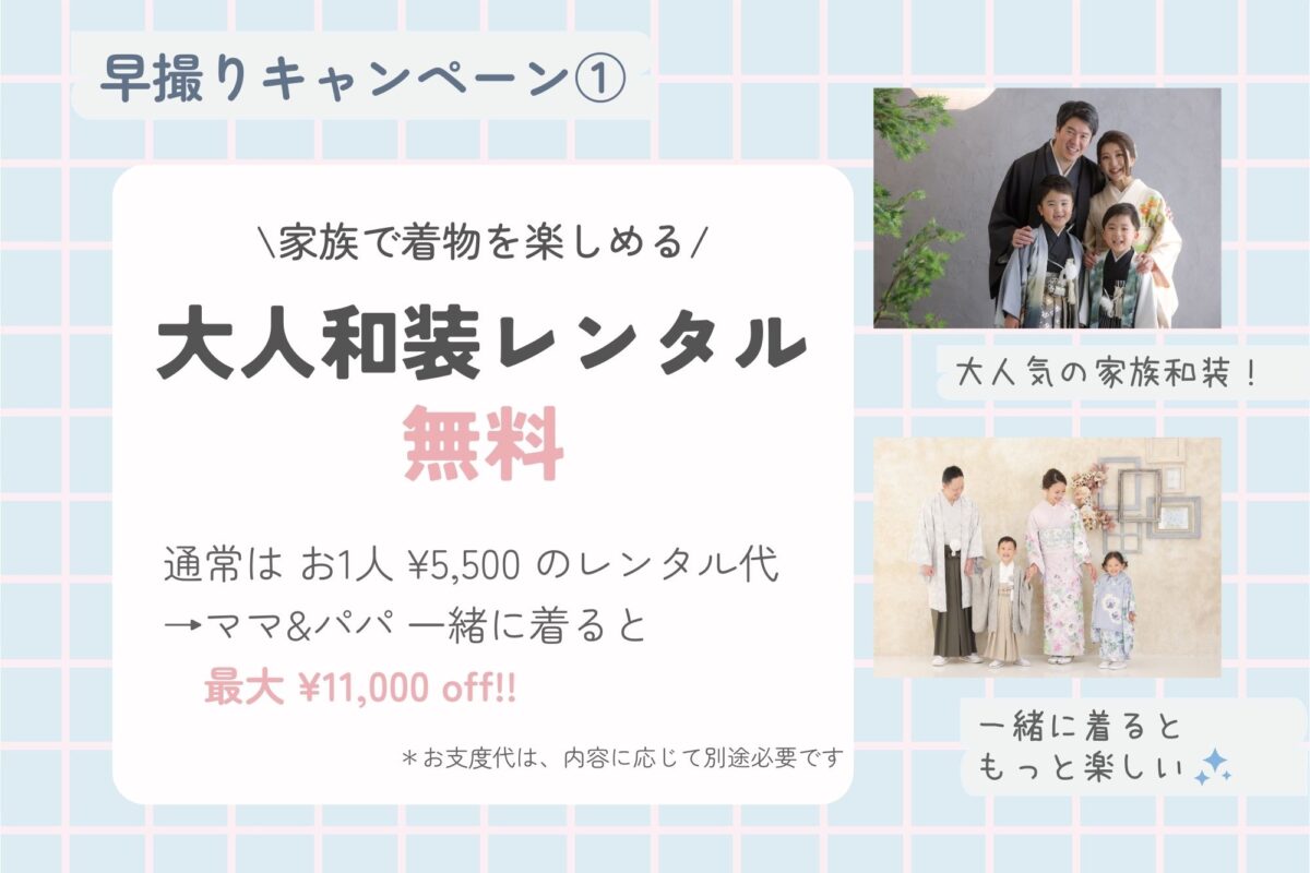 パパ&ママが一緒にレンタルすると、最大 ¥11,000 OFF!