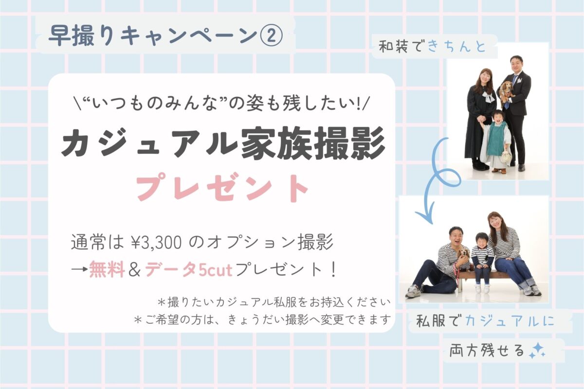 通常、家族写真を 和装+私服 の両方で撮る場合はオプション(¥3,300)ですが…